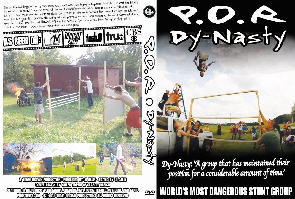 The undisputed kings of homegrown stunts are back with their highly anticipate final DVD to end the trilogy. Featuring a murderers' row of some of the most insane / innovative stunt men in the scene, blended with some of their most creative stunts to date. Every stunt on the main feature has been featured on television over the two year film process, shattering all their previous records, & solidifying the most featured videos ever on Tosh.O & the G4 Network. Witness the World's Most Dangerous Stunt Group in their prime. The bar has been made, always remember violence pays.